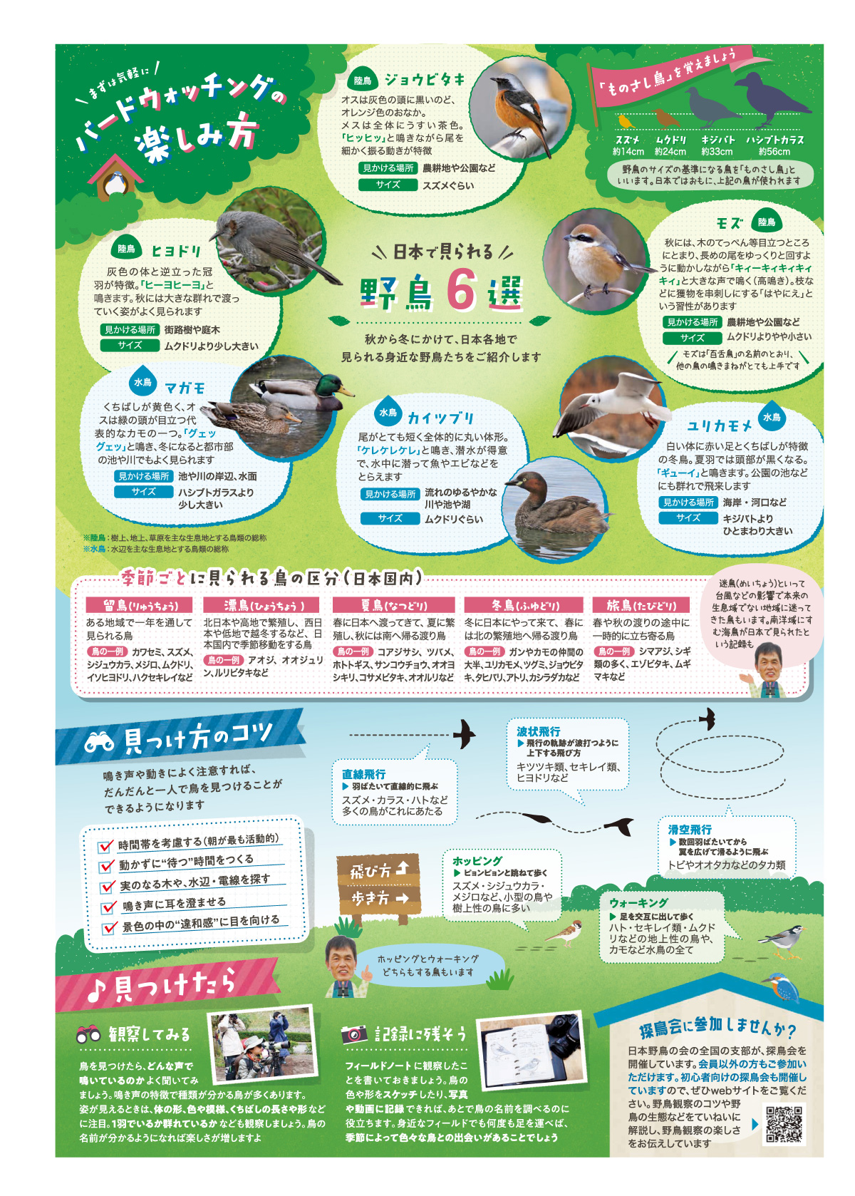 今回のテーマは、気軽にはじめられる「バードウォッチングに出かけよう」