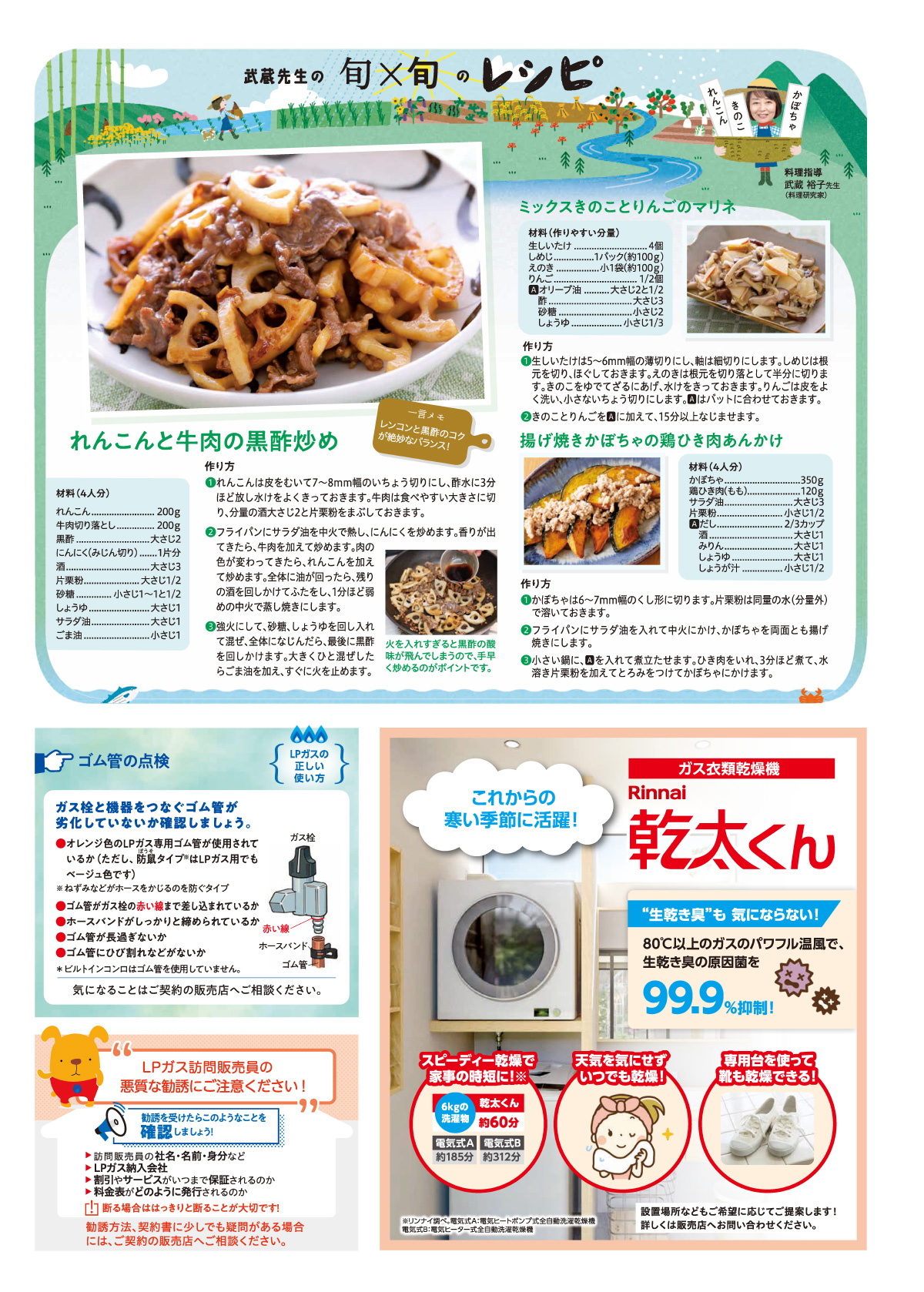 暮らしに役立つ情報や季節に合わせた料理レシピの紹介、ガス機器のPR等など様々な情報をお届けします。また、クイズやプレゼント企画など毎月楽しい情報が盛りだくさん。皆様の安心で快適な暮らしをサポートします。ぜひ、ご覧ください。
