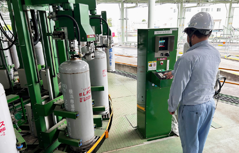 当社は、根岸出荷センターにおいて岩谷産業(株)並びにLPガス元売会社様からお預かりしたLPガス(プロパン)をタンクローリー車並びに各種ボンベに充填出荷し、当社をご利用いただく各社様を通じて関東甲信エリア一円の需要家様へお届けしております。